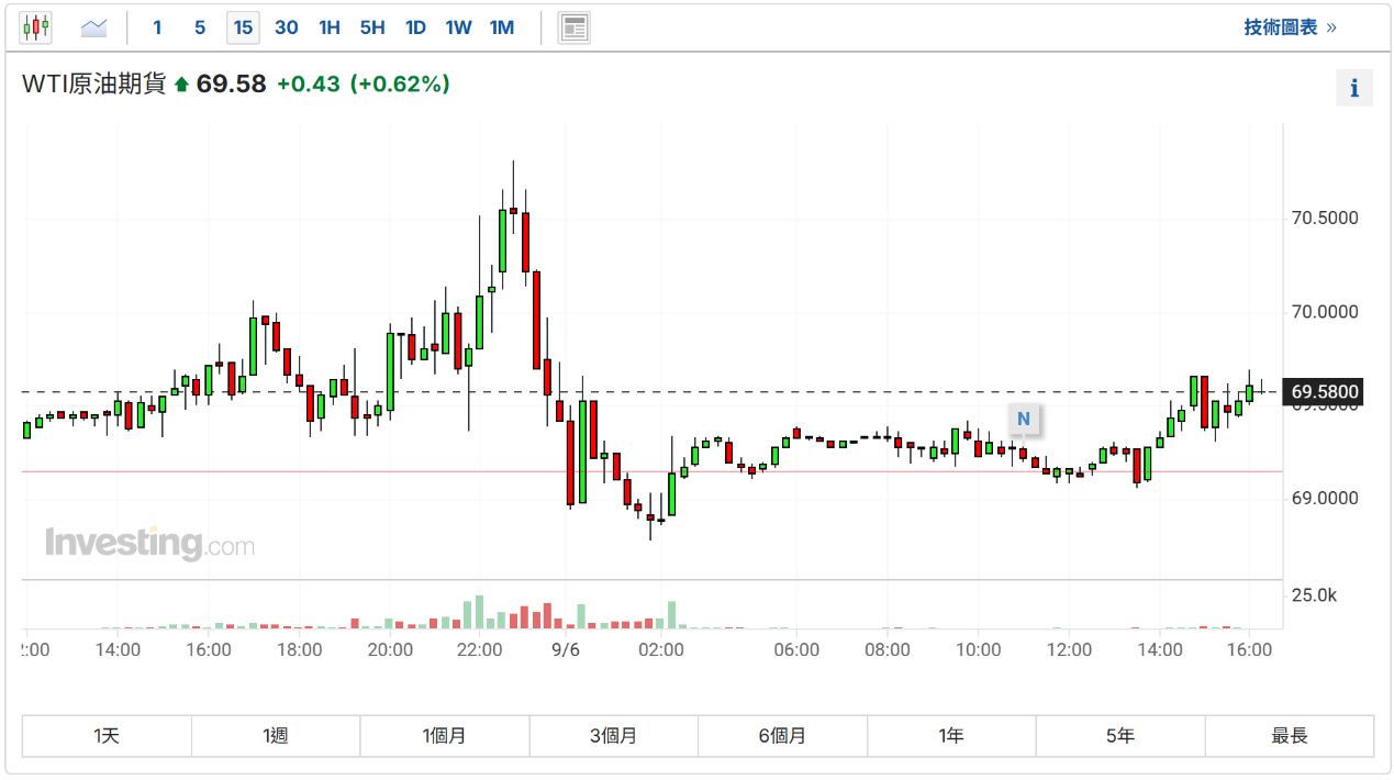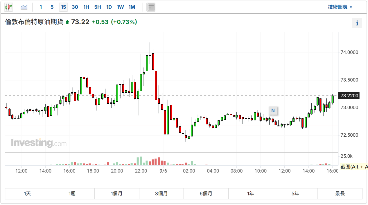 伦敦布伦特原油期货日内升0.73%,向上触及73.22美元/桶。WTI原油期货日内升0.62%,报69.58美元/桶。OPEC+推迟10月增产计划,加之美国原油库存大幅下降,为油价提供了支撑。