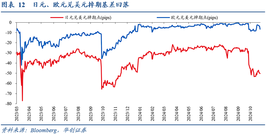 。10月25日,日元兑美元掉期基差为-50.3bp,欧元兑美元掉期基差为-6.5bp,一周前分别为-48.8bp、-2.3bp。