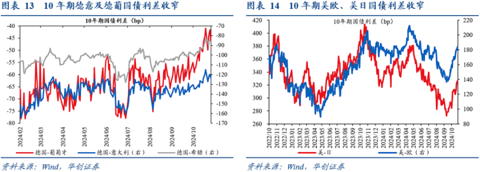 。10月24日,10年期美欧国债利差为183.8bp,一周前为178.6bp。10月24日,10年期美日国债利差为324.6bp,一周前约为310.8bp。
