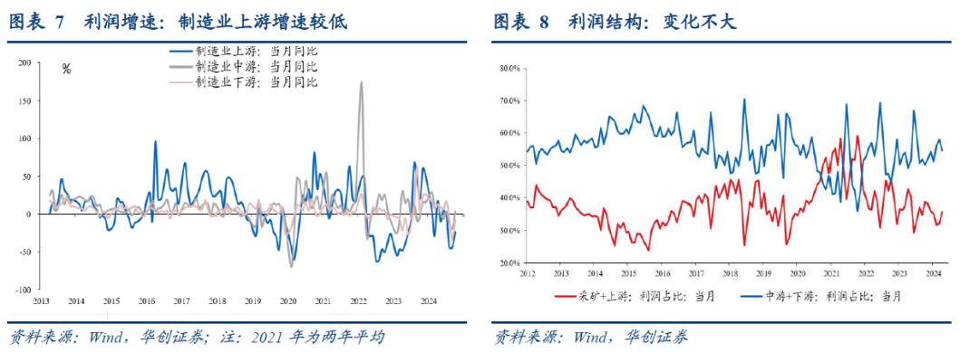 10 月,采矿业利润增速有所回落,同比为 -28.9% , 9 月为 -23.1% 。制造业增速为 -7.1% ,前值为 -29.6% 。电热气水增速为 6% ,前值为 -7.93% 。