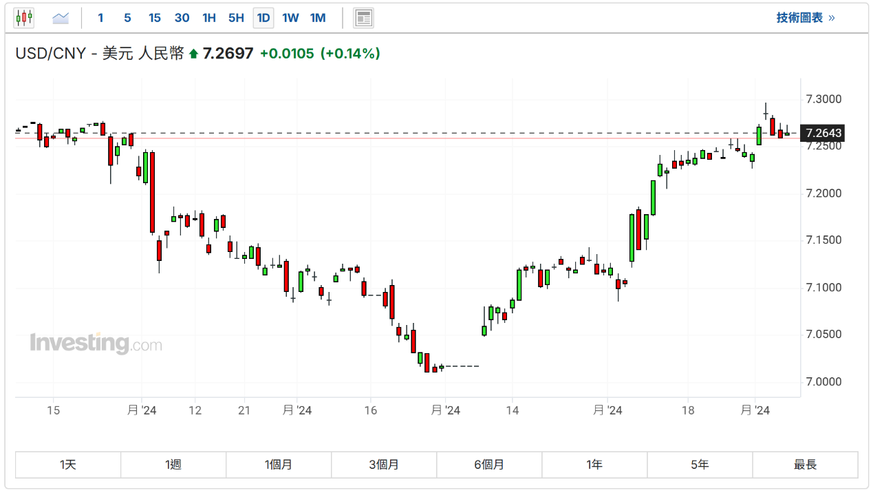 人民币汇率走低,美元兑人民币小幅上升。美国「关税政策」下,美元将继续升值,市场对人民币汇率跌破7.3有着一定的预期。