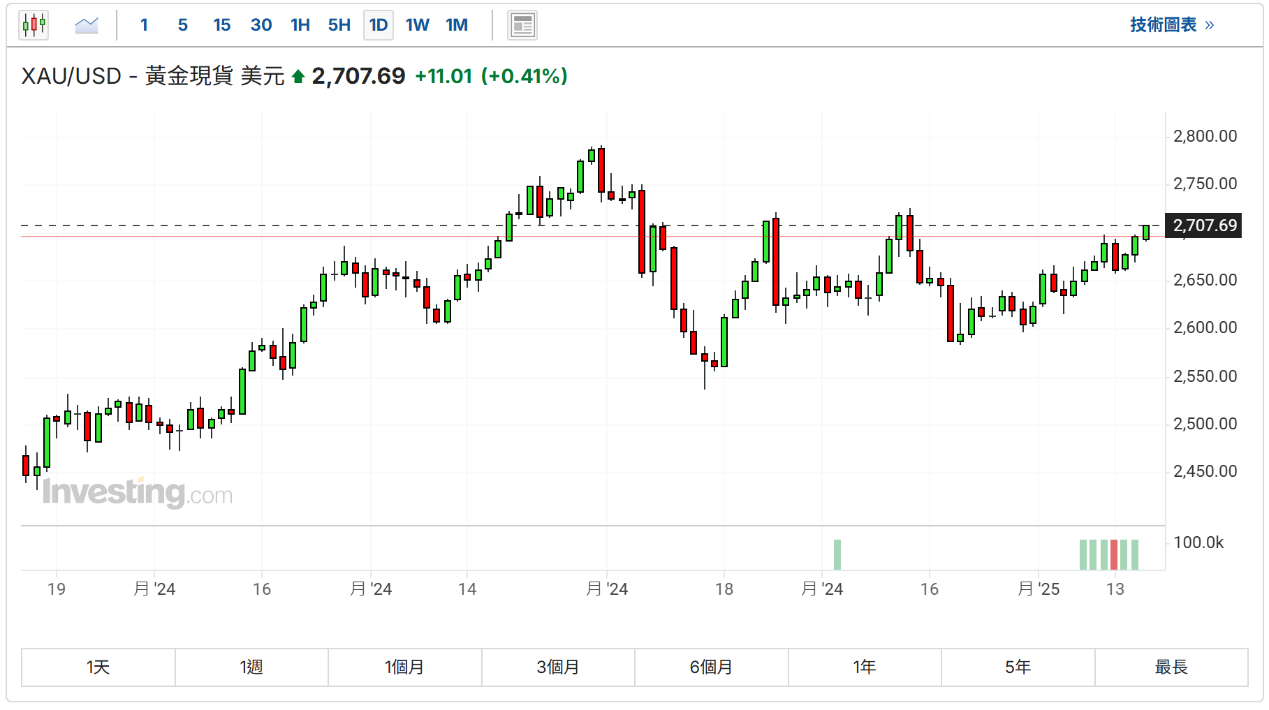 周四,1月16日,时隔5周,XAU/USD年内首次站上2700美元。