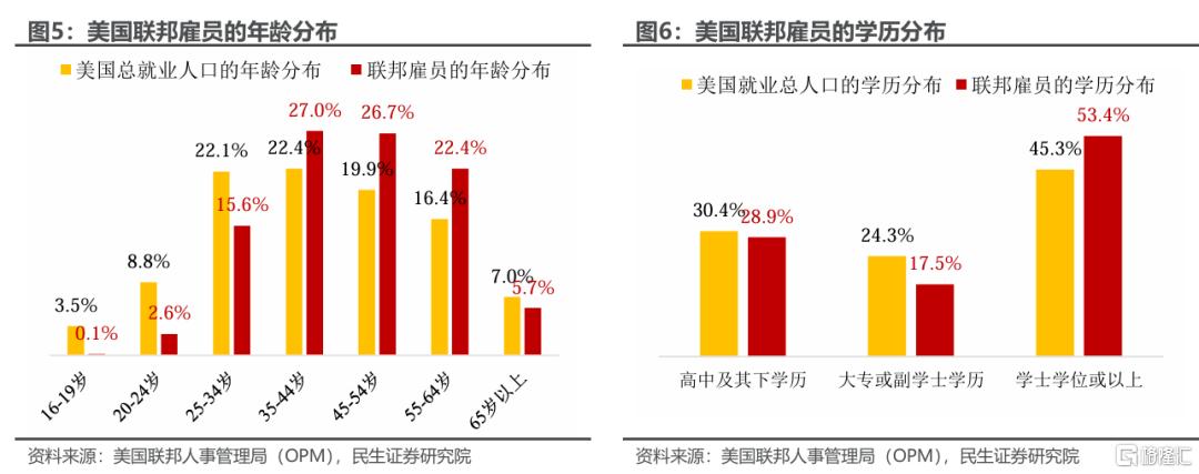 4)远程办公的占比高。联邦工作人员中,约54%的人完全现场工作,10%完全远程办公,36%的人采用混合制。特朗普已要求结束所有远程办公,或导致大量员工被迫离职。